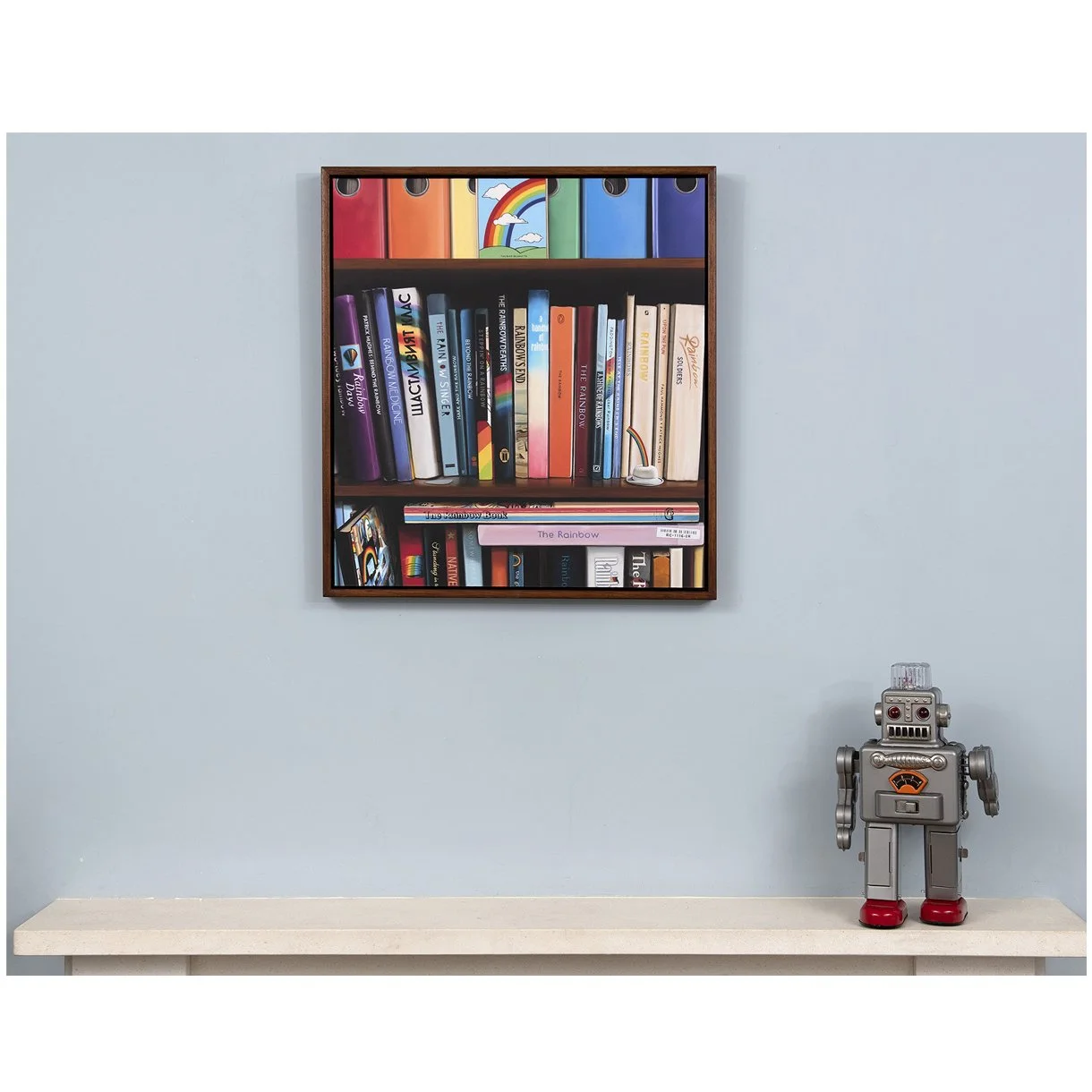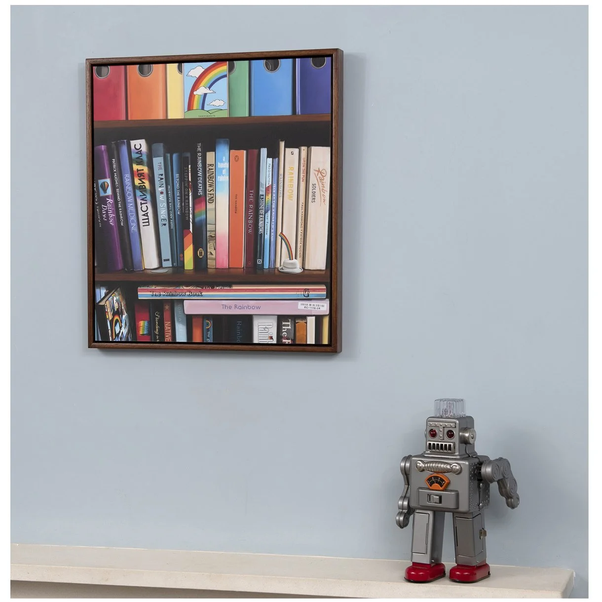 Reflecting a unique rainbow collection, ‘Rainbow Reading’ is a collection-themed work hand-painted in 2017. commissioned by Paul Butler, who has spent nearly fifty years amassing a diverse and eclectic collection of rainbow prints, paintings and works on paper, plus other assorted rainbow bric-à-brac, books and clothing. All proceeds from the sale of this print was donated to the NHS in 2020.